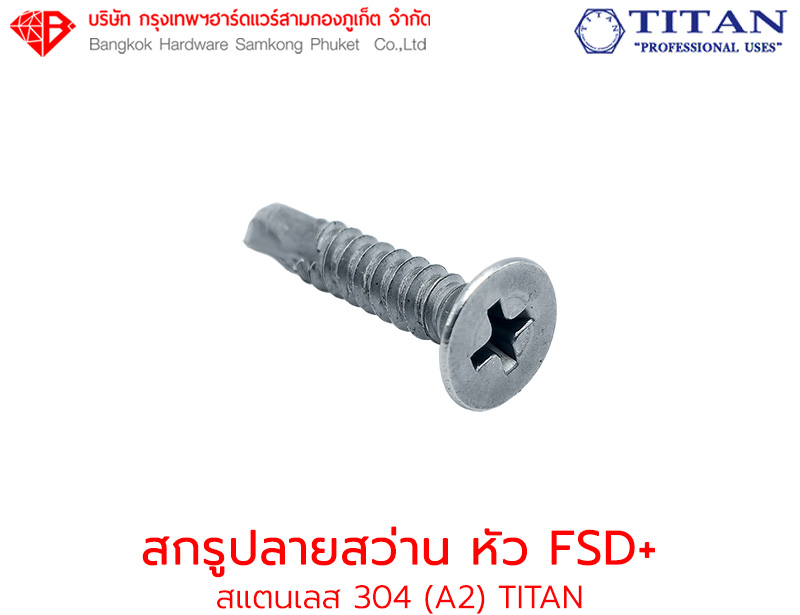 สกรูปลายสว่านหัวเตเปอร์สแตนเลส 410 FSD มีคุณสมบัติหลักคือ เป็นสกรูที่ปลายมีลักษณะเหมือนสว่าน สามารถเจาะทะลุวัสดุได้ด้วยตัวเอง โดยไม่ต้องเจาะรูนำ มีหัวเตเปอร์ที่ออกแบบมาให้ฝังเรียบไปกับเนื้อวัสดุ ทำจากสแตนเลสเกรด 410 ซึ่งมีความแข็งแรงทนทานกว่าเกรด 304 และทนสนิมได้ดี เหมาะสำหรับงานอุตสาหกรรมที่ต้องการความแข็งแรงเป็นพิเศษ เช่น การติดตั้งกับหลังคาเมทัลชีทในพื้นที่ที่มีความชื้นและลมแรง.