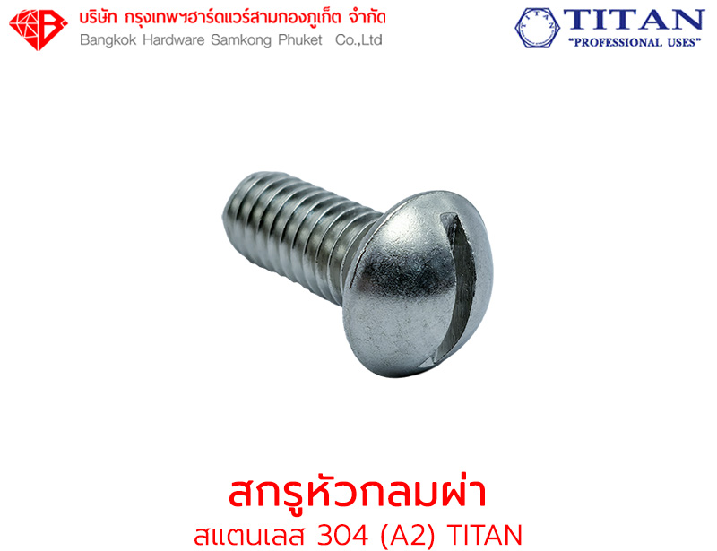 สกรูหัวกลมผ่า สแตนเลส 304 (A2) ไททัน