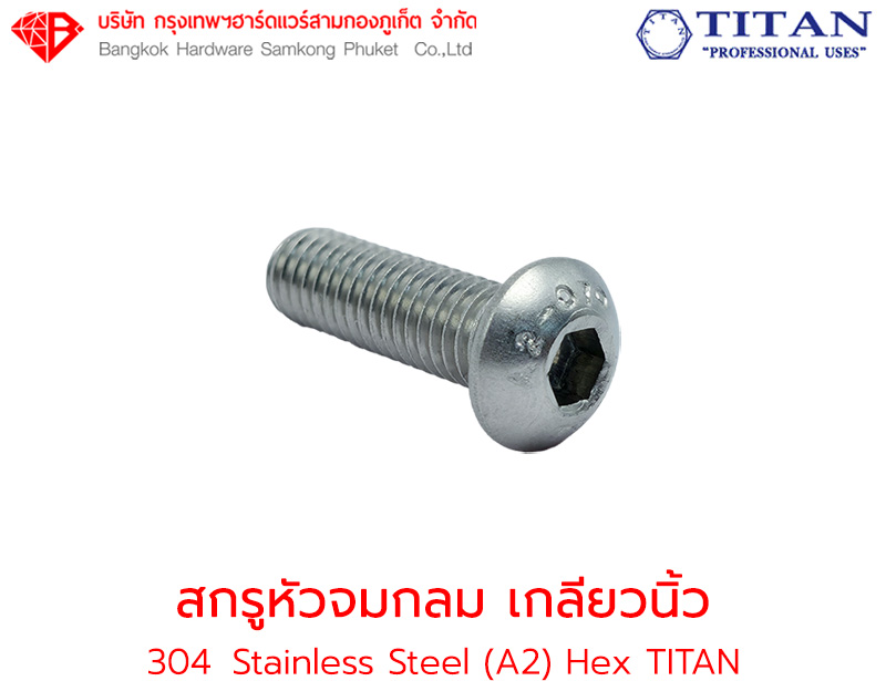 สกรูหัวจมกลม เกลียวหุน สแตนเลส 304 (A2) ไททัน