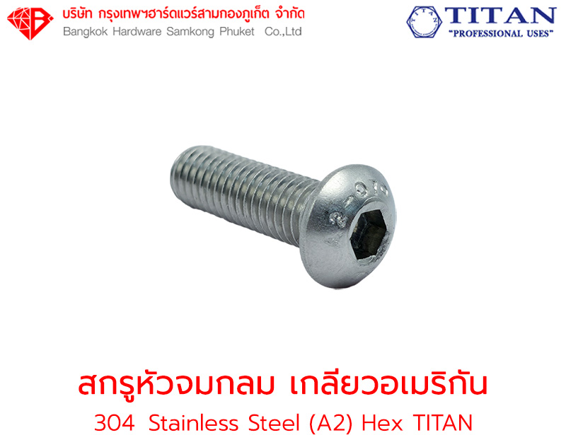 สกรูหัวจมกลม เกลียวอเมริกัน สแตนเลส 304(A2) ไททัน