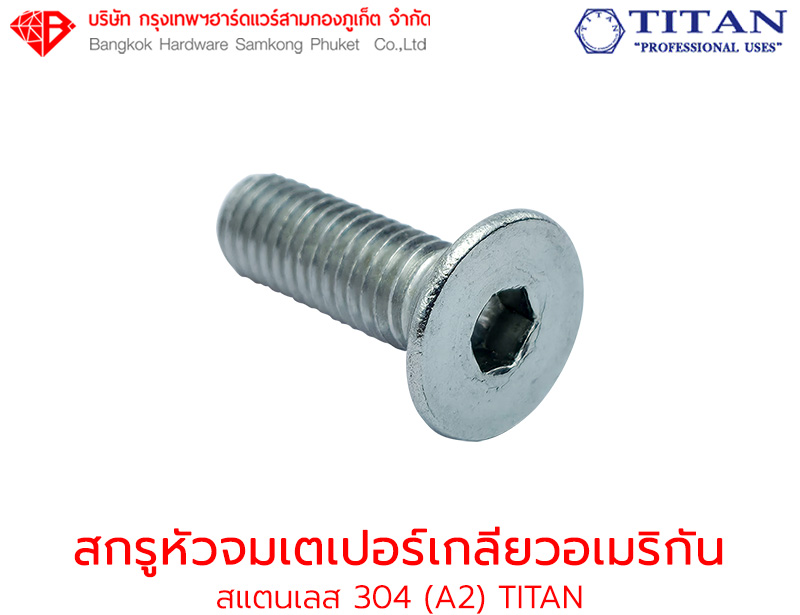 สกรูหัวจมเตเปอร์ สแตนเลส 304 (A2) เกลียวอเมริกัน ไททัน