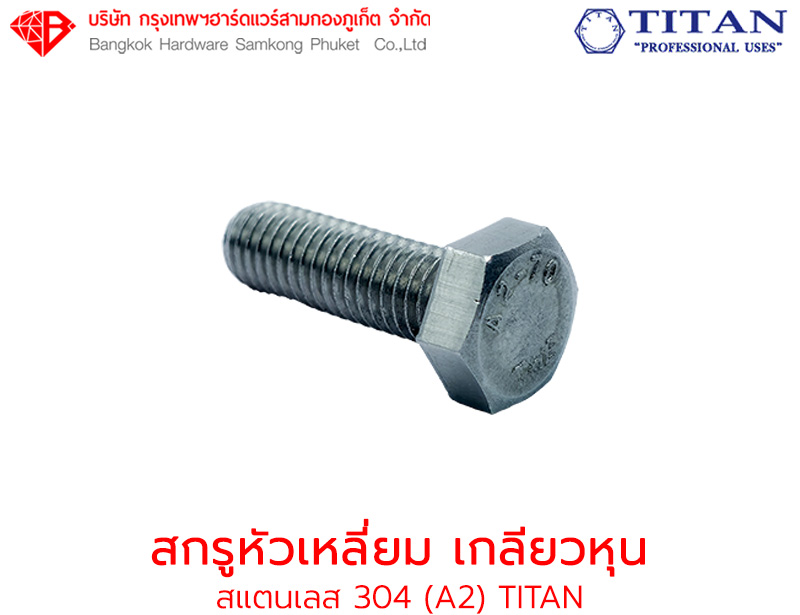 สกรูหัวหกเหลี่ยม สแตนเลส 304 (A2) เกลียวหุน ไททัน