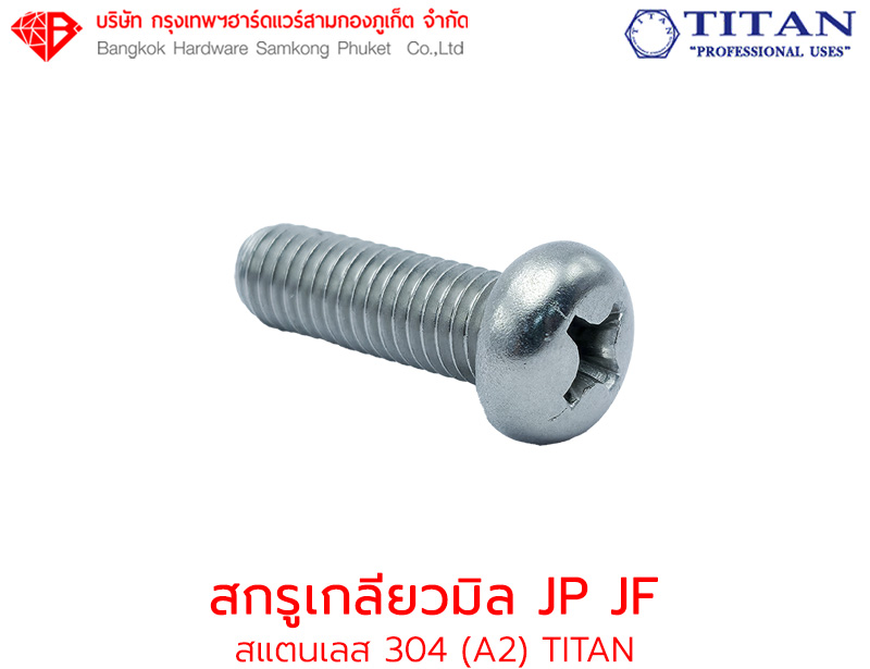 สกรูเกลียวมิล สแตนเลส 304 หัว JP ไททัน