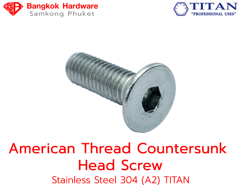 Features of the 304 stainless steel countersunk head screw with an American thread: