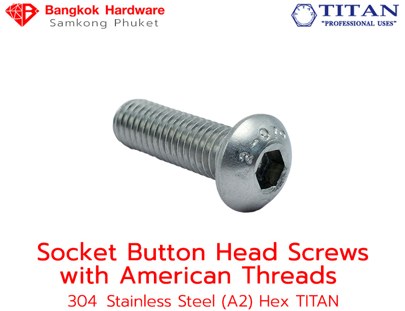 Stainless Steel 304 Hex Socket Button Head Cap Screw Metric thread TITAN